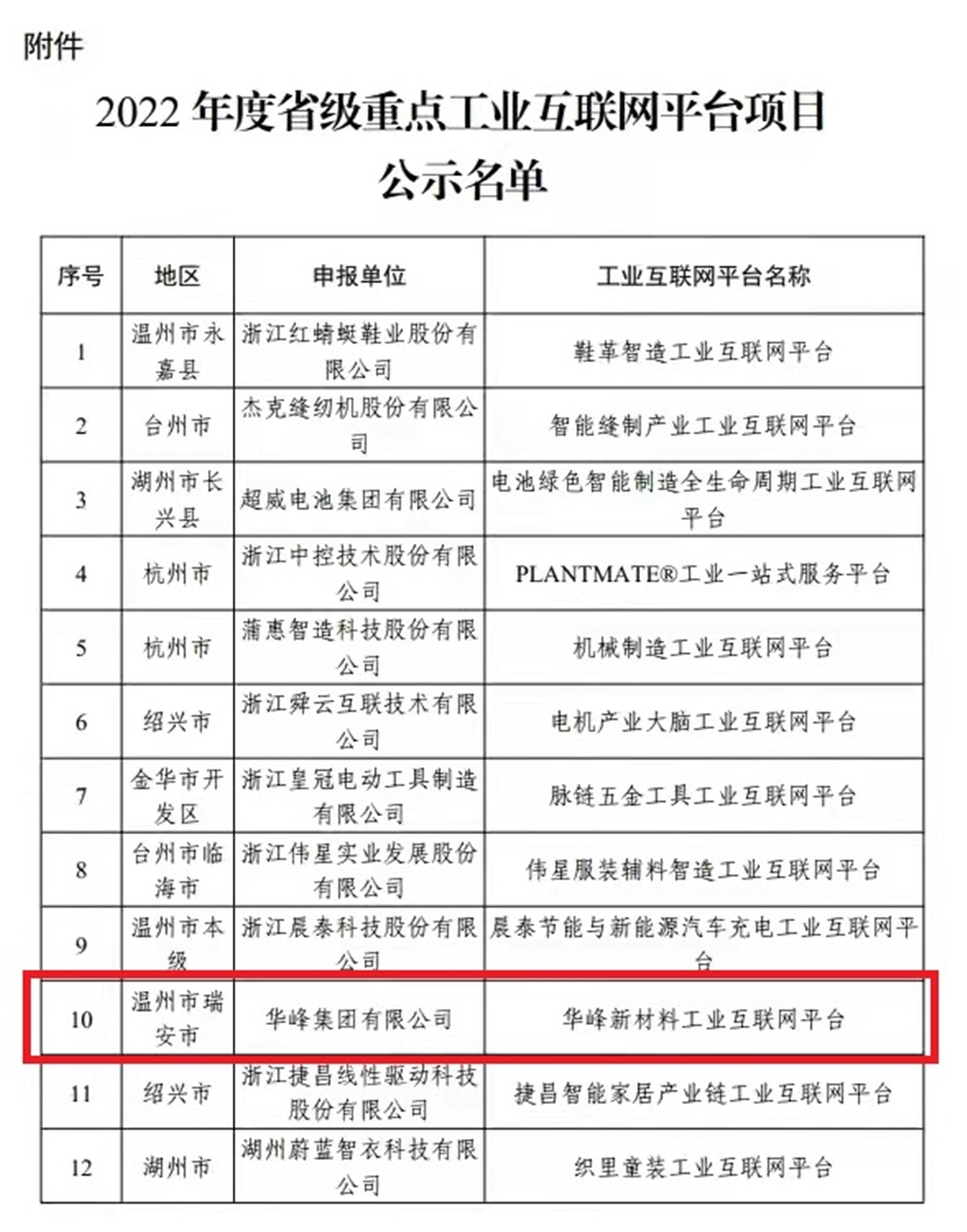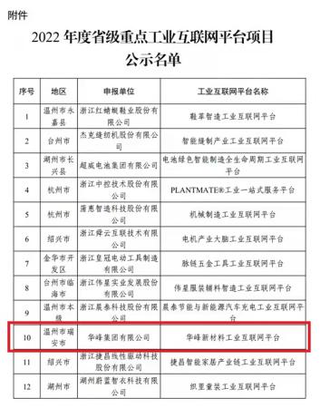 1月27日,浙江省经信厅公示了2022年度省级重点工业互联网平台项目名单,申博新材料工业互联网平台(原申博工业互联网平台)成功入选。