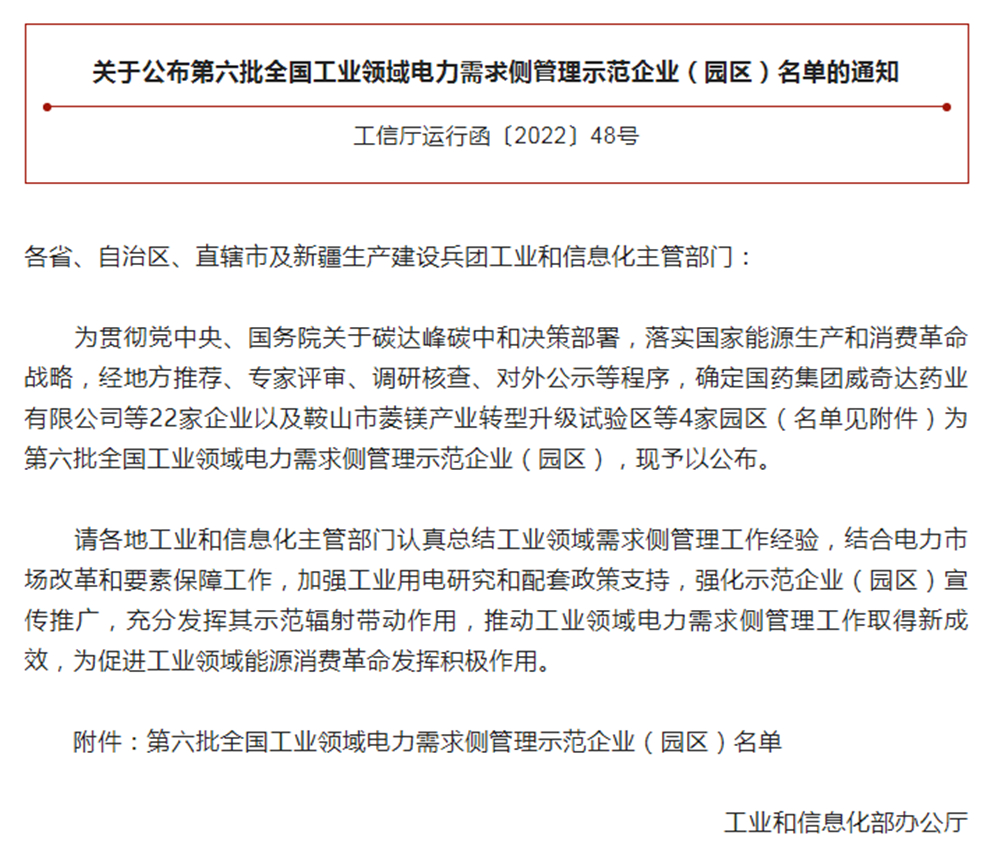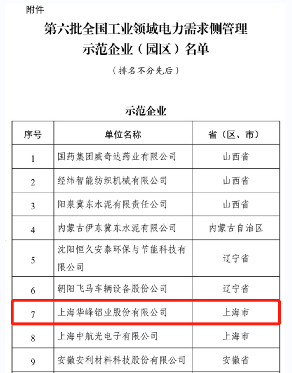 323日,在工业和信息化部办公厅发布的第六批全国工业领域电力需求侧管理示范企业(园区)名单中,上海申博铝业股份有限公司顺利入选。