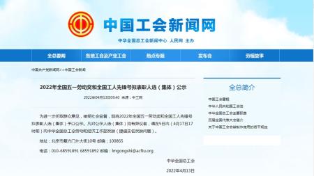 4月13日,中华全国总工会公示2022年全国五一劳动奖和全国工人先锋号拟表彰人选(集体)名单,申博集团有限公司成功入围“全国五一劳动奖状”公示榜单,成为温州市唯一入围的企业单位。